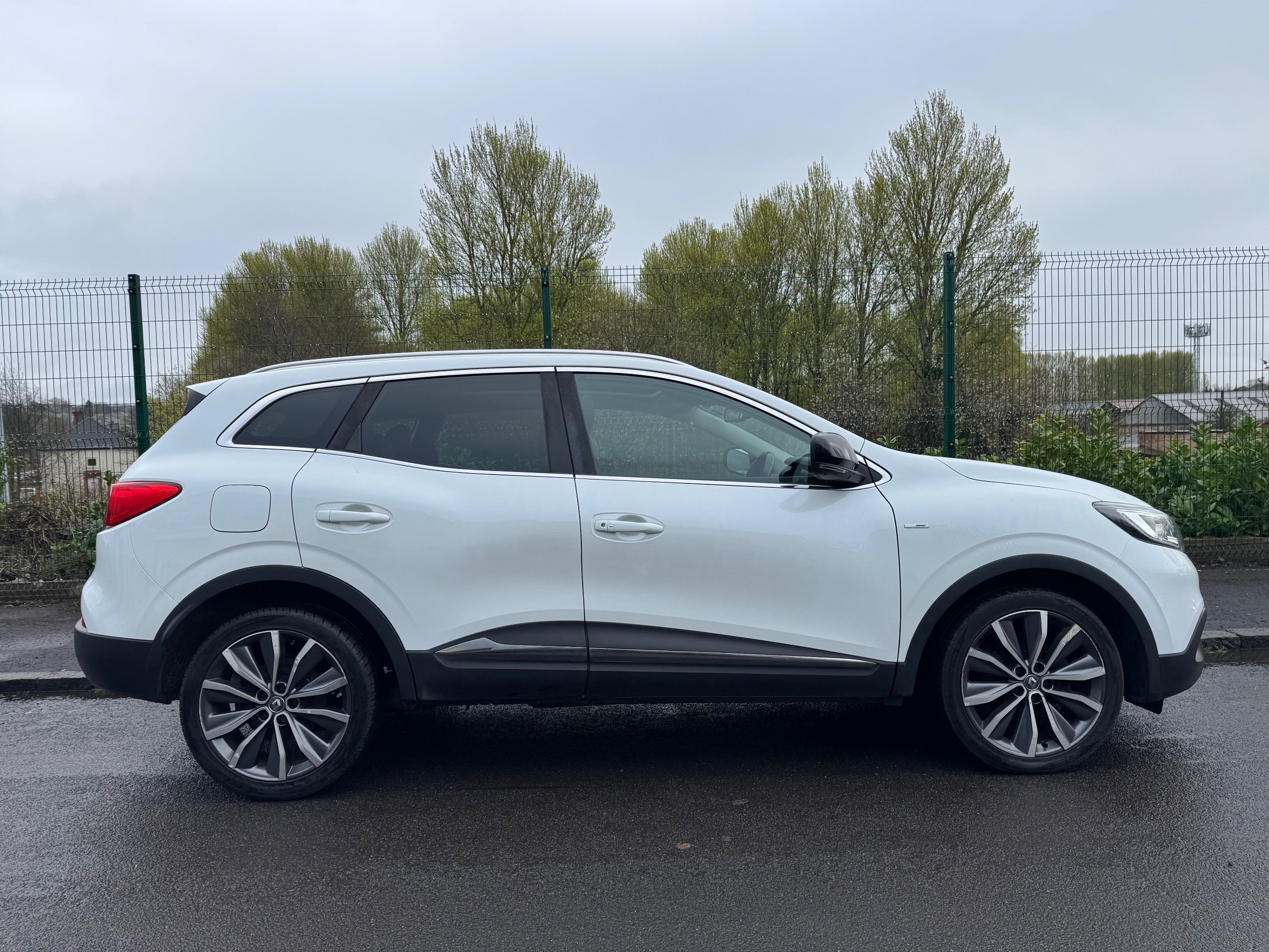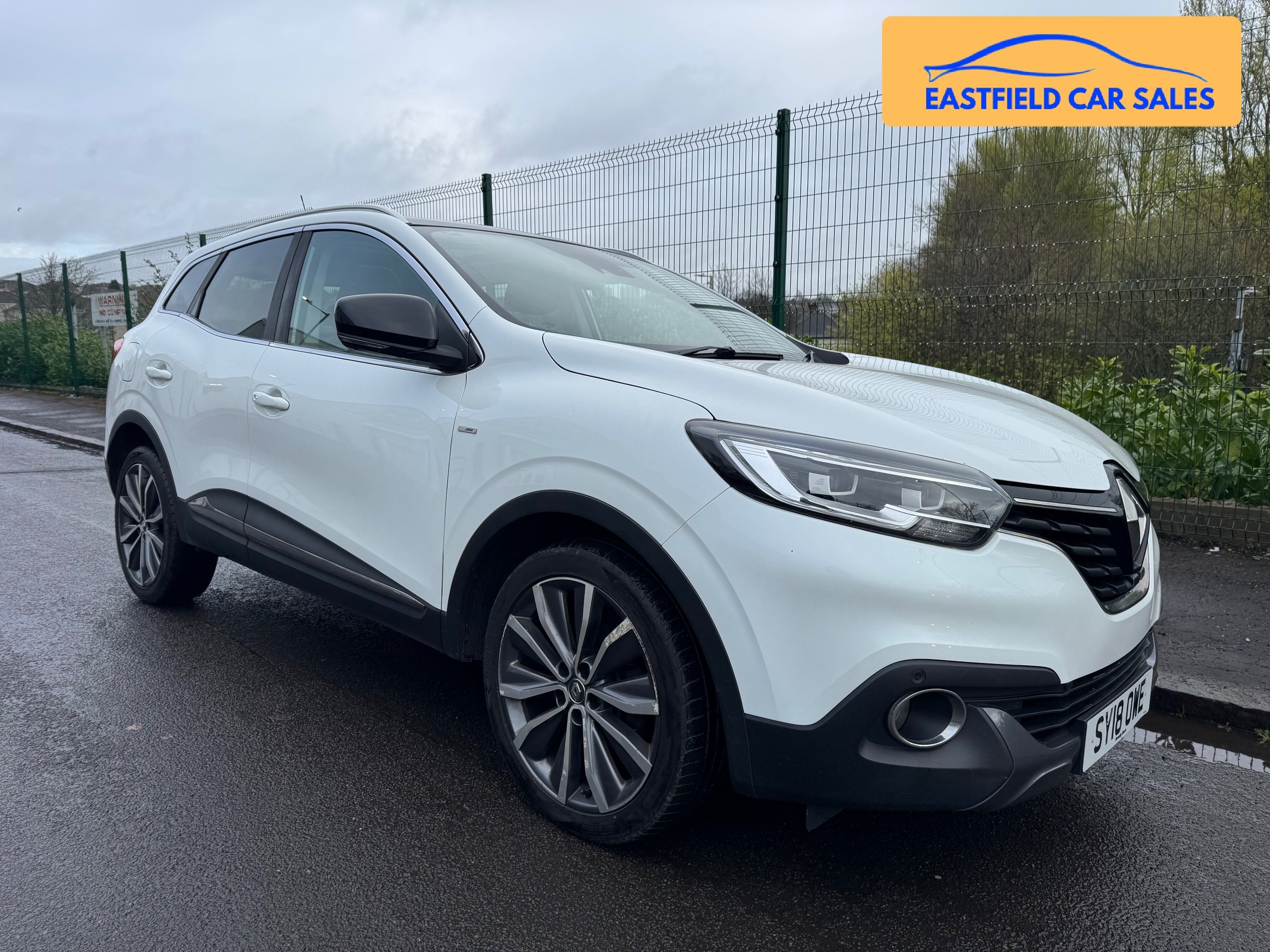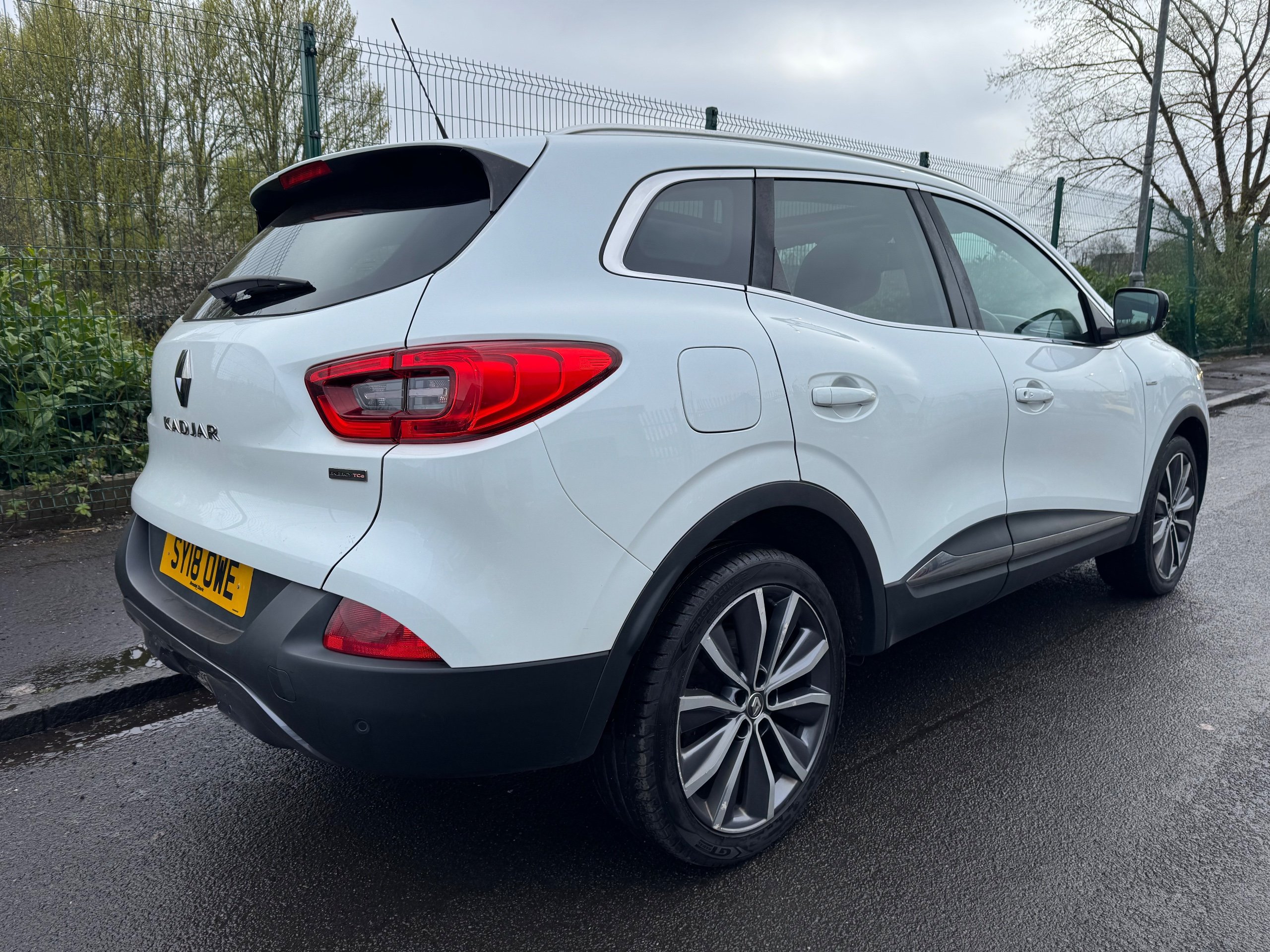 This 2018 Renault Kadjar 1.6 TCe Signature Nav SUV with a manual transmission is a stylish and practical vehicle with just 91633 miles on the clock. It runs on efficient petrol and is ULEZ compliant, making it perfect for city driving. With 5 seats and 5 doors, this SUV provides ample space for passengers and cargo., giving you peace of mind for years to come. The Arctic White exterior is complemented by 19in Alloy Wheels and Chrome Detailing, giving it a sleek and modern look. The body sided moulding with chrome insert and chrome window surrounds add to its refined aesthetic. With its Euro 6 (s/s) engine producing 165 ps, this Renault Kadjar is a powerful and reliable choice for all your driving needs. -